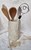 Unieke handgemaakte spatel/utensil houder van keramiek met een gedetaillerde graan afdrukken.