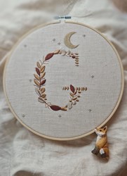 Wandhanger geborduurd letter Leaves + Moon & Stars