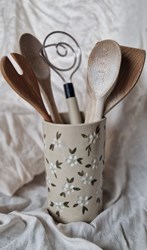 € 57,50Unieke handgemaakte spatel/utensil houder van keramiek met een bloemen.
